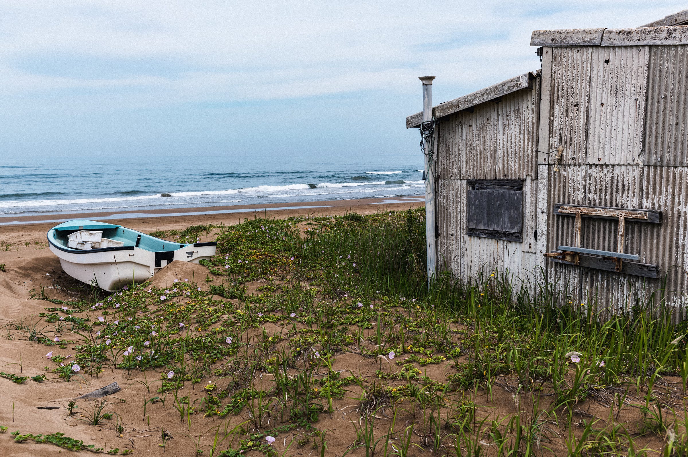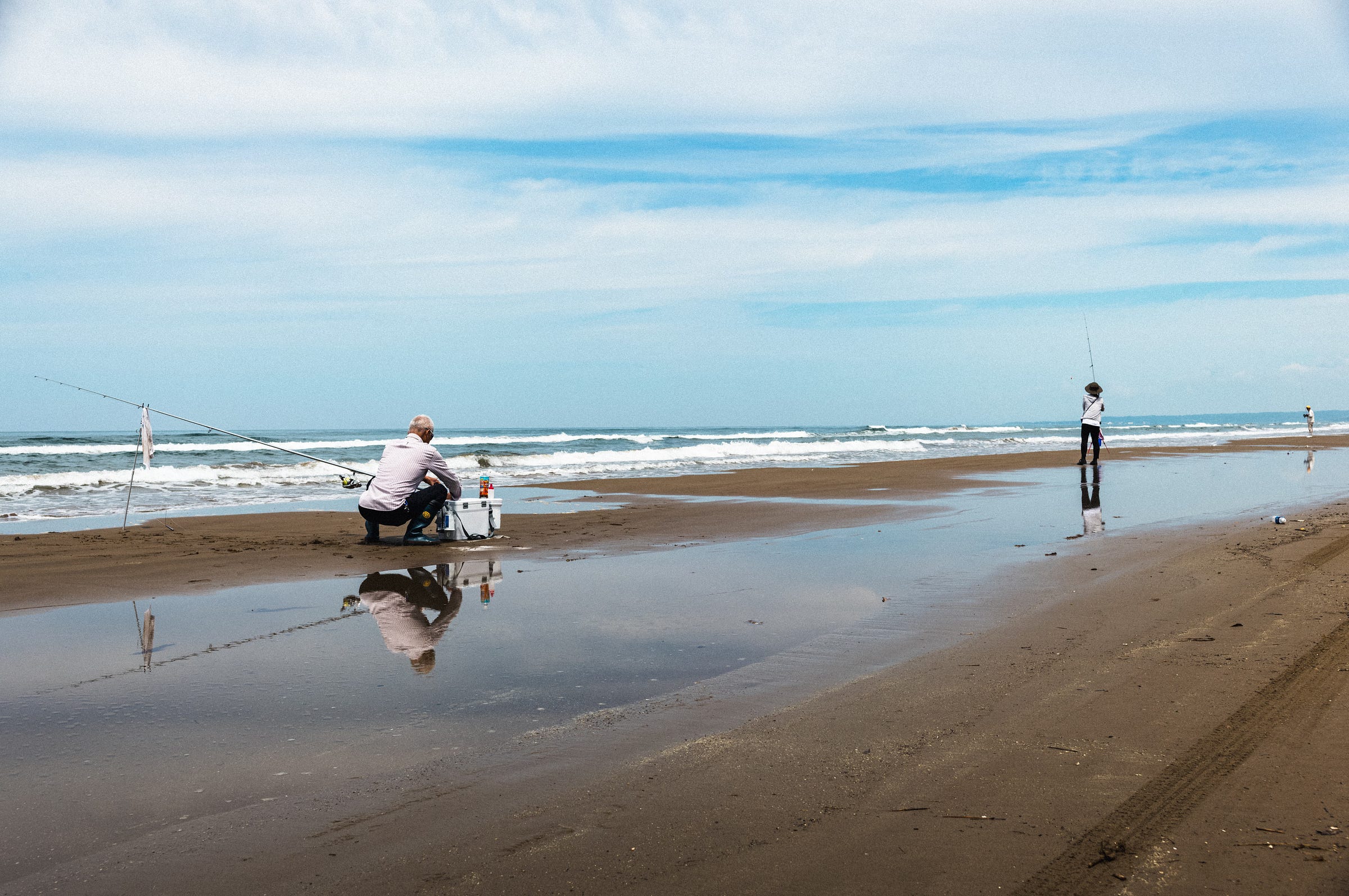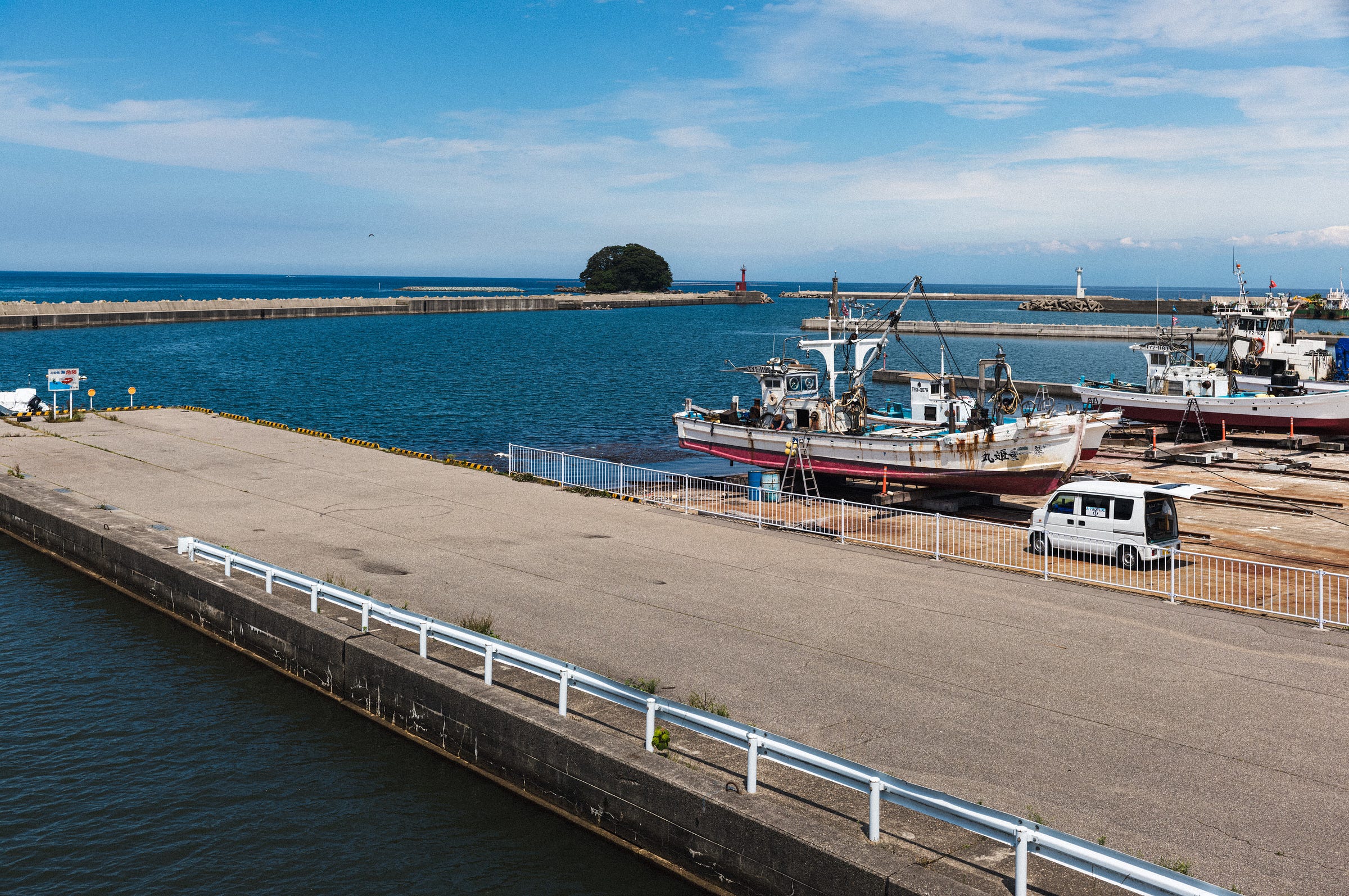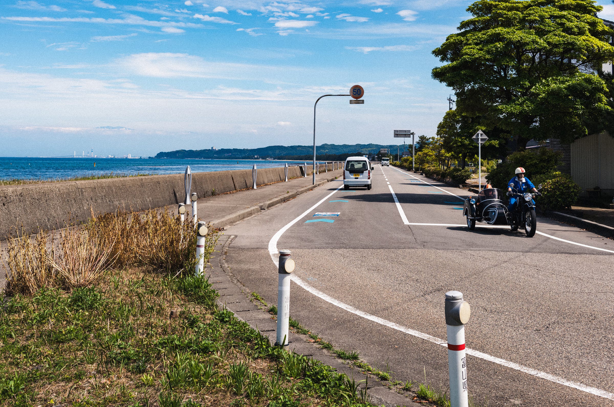 The day’s coastal adventure began in Chirihama Beach, Ishikawa Prefecture—special not only for its sprawling, clean stretch of sandy beach that runs for almost ten kilometres, but also famous for being Japan’s only public road where vehicles can drive directly on the well-compacted shore. The Chirihama Nagisa Driveway is flanked on one side by low-lying, windswept coastal brush skirting the municipal borders of Hakui city, and on the other by the deep, churning blues of the Sea of Japan. The ports of North Korea’s Chongjin and Russia’s Vladivostok sit almost directly abreast across the water. Along the surf, groups of fishermen and women rig various types of reinforced, elongated fishing apparatus, eagerly anticipating the next great catch—the sacred act of waiting, of not knowing when the moment will strike, a primordial race between man and nature.