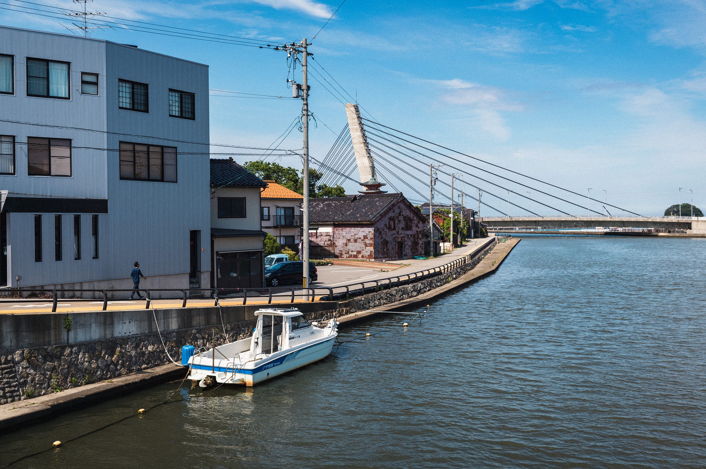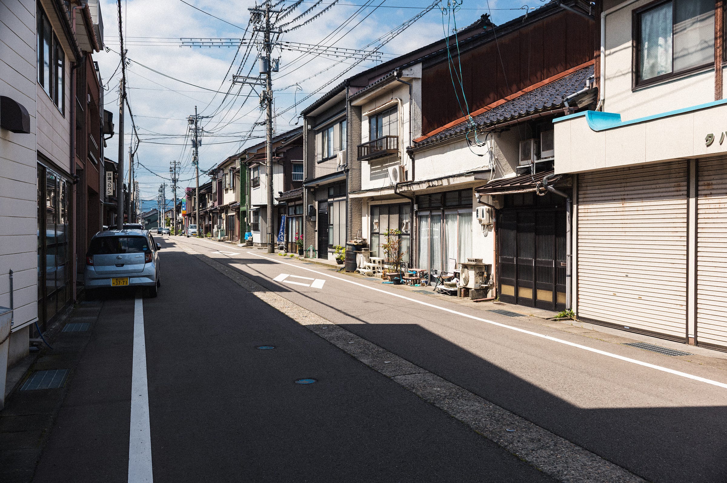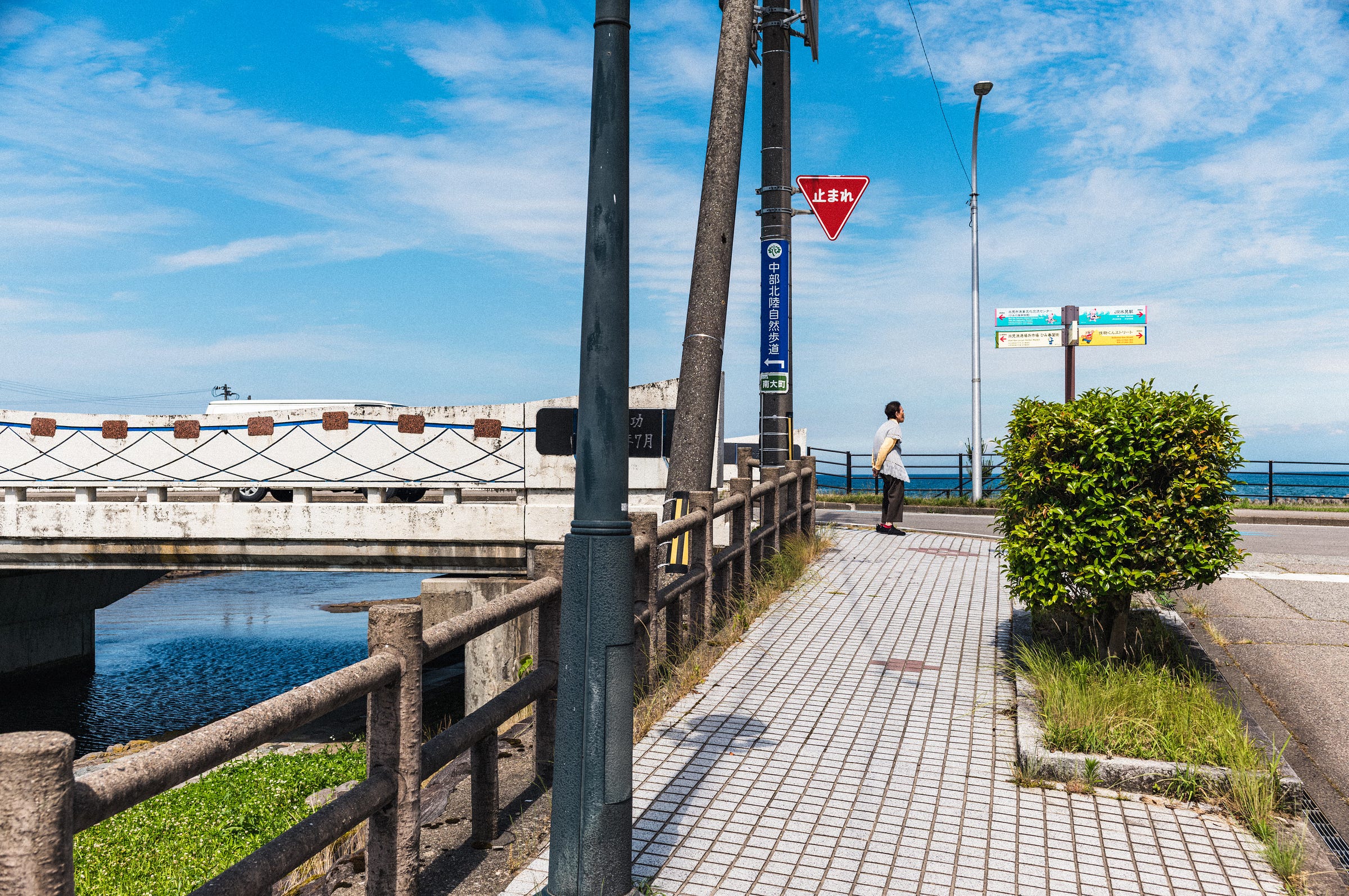 Onwards I drove into the green, terraced hills and flooded rice paddies of Toyama Prefecture, where great herons, pelicans, hawks, and various other fowl swarm and dive into the paddies in search of insects and the occasional tadpole. When it comes to the people, the elderly outnumber everyone else, predominating the rural farms and villages, while younger generations are nowhere to be found. Time stands still; the old and ancient keep toiling away. Hard work and tending the land dates back generations, and will continue for ages to come. The shaded cedar groves and hills give way after some time, leading down into a wide, bright, sun-bleached inlet—the Bay of Toyama—with Nagano’s snow-capped Northern Alps breaching the ocean mist on the horizon.
